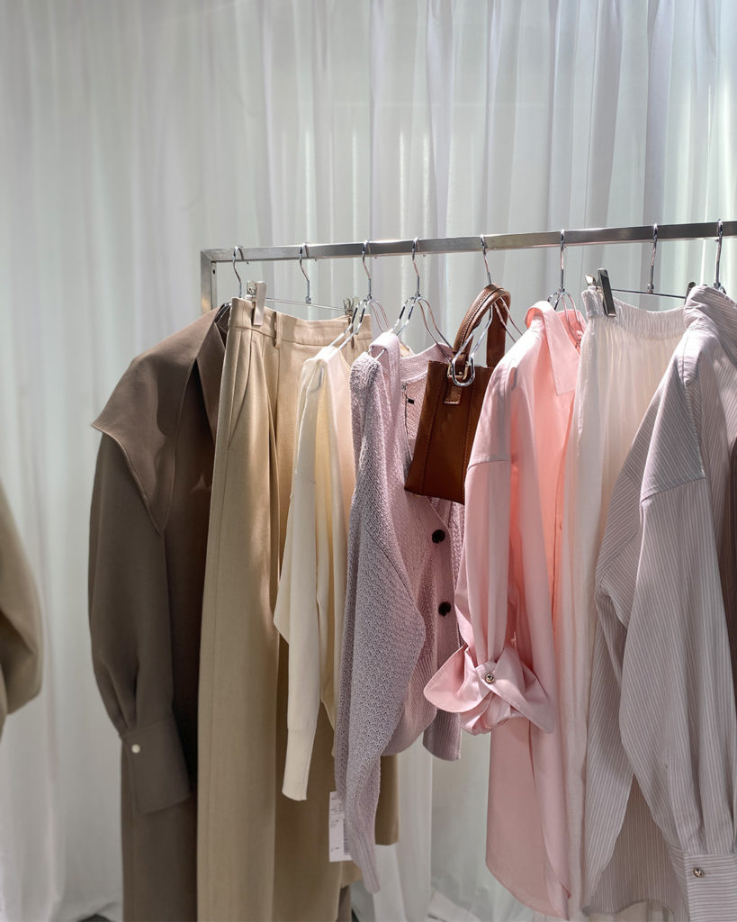 この春夏は、サンドベージュやグレー、ネイビーをベースに、春はピンク、オリーブグリーン、アイスブルーなどの柔らかいパステルカラーを、初夏からはエネルギッシュなビビットカラーの差し色を効かせて展開。