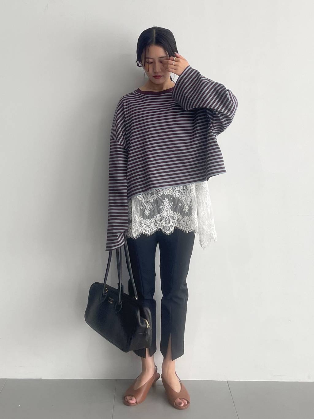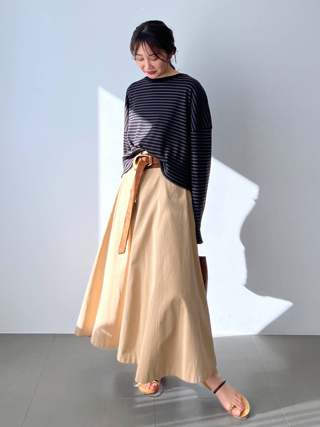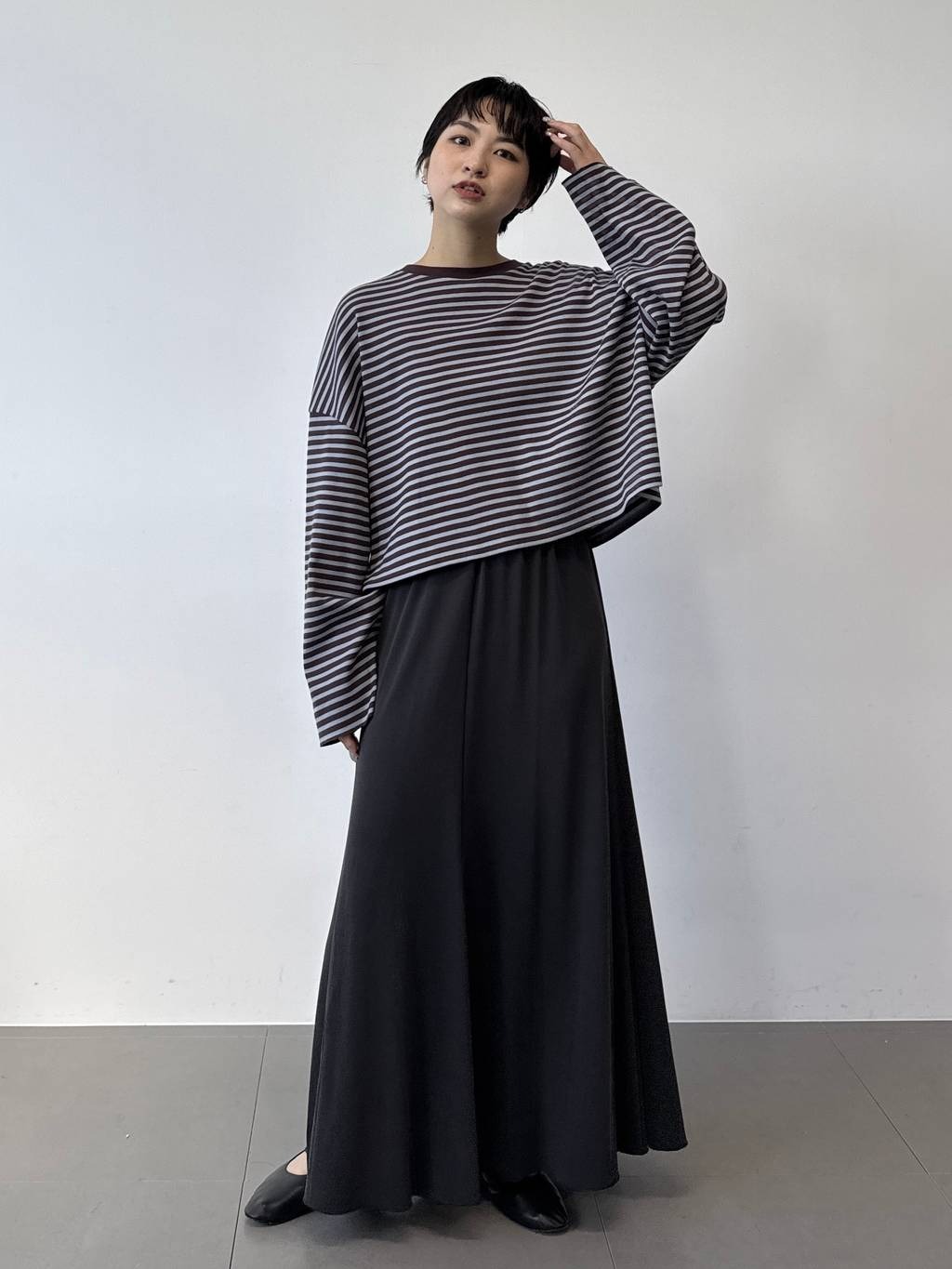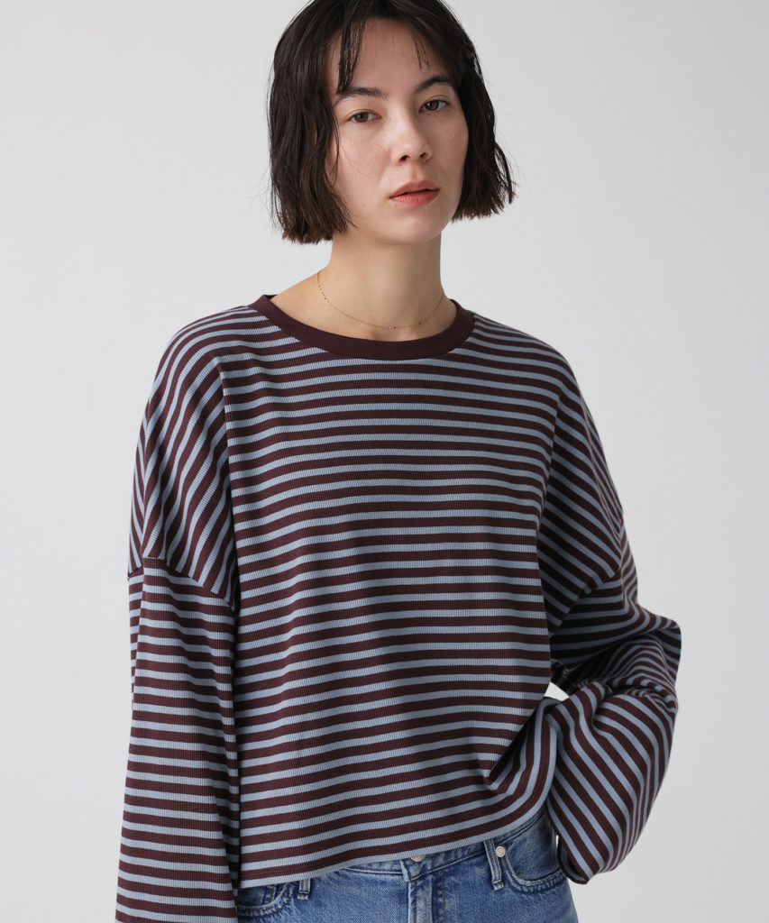 体が華奢に見えるようこだわったボーダーロンT。生地を贅沢に使用し、クロップド丈の泳ぐようなシルエットを実現。肌触りの良いコットン100%素材で快適にお過ごしいただけます。こだわりのカラー配色が最大のポイント!