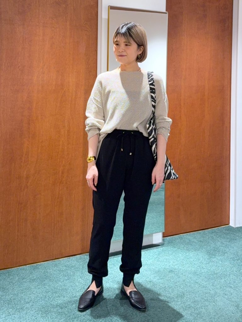 小柄なAOIさんは、綺麗なジョガーシルエットが楽しめるSサイズをチョイス。