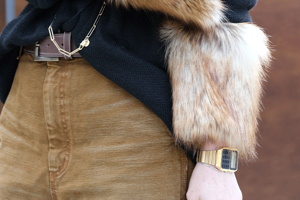 ニット部分は、ボートネックリブプルオーバーと同色でお作りしております。ラクーンのエコファーをカフスの様に仕立てて縫い付けております。ファー部分はフェイクとは思えない滑らかな毛並み。素材の特性上おひとつおひとつ色味に多少の変化はございますが、毛並みのお色ベースは同じ仕様。またお手元の動きに合わせてスリットを入れてるので、窮屈さがなく着用できるのも魅力です。