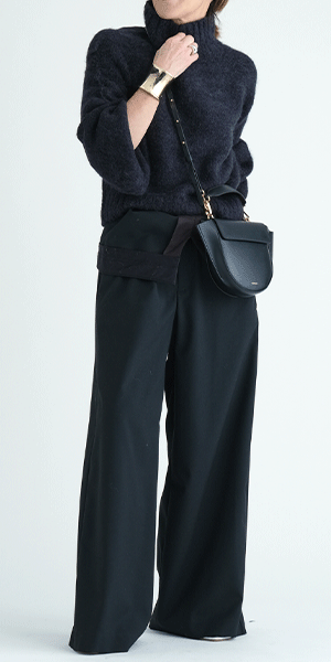 一見シンプルそうに見えるこのニットはお袖に注目。ふんわりと丸みを帯びたシルエットで、更にたくし上げた時のボリューム感が可愛いのです。アルパカ素材で暖かさはもちろんなんですが、程よくツヤっぽさがあり黒でも重くならなずに柔らかさが出ます。ホリデーシーズンのイベントにも活躍してくれそうなニットを再発見!ブラウンとホワイトの3色展開です。