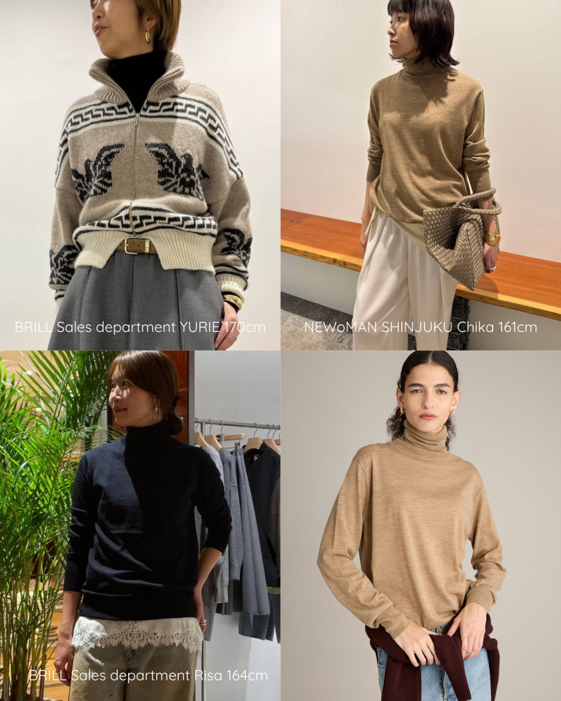 首もとまで包み込む凛とした佇まい。冬のスタイルを語る上で外せない”タートル”。シンプルなのに、着る人の雰囲気をぐっと引き上げてくれる。まさに”静かな主役”。そんなタートルを選ぶ上で外せないポイントが、シルエットと素材。オトナの諸事情はいろいろで、ピッタリすぎると主役としての着こなしはちょっと…ねぇ。そんなの承知のBRILL。ややタイトなシルエット、でも身体の線を拾いづらいサイズ感に仕上げてるので、程よいゆとり感がほんと嬉しい!1枚でもインナーとしてもOK。肌触りが良く、発色が綺麗な梳毛を16Gで編み立てたベーシックなエクストラファインメリノウールを使用で、肌当たりの優しさも♡級。ブラック・ベージュの2色展開で、う~ん。どっちも欲しいやつ。
