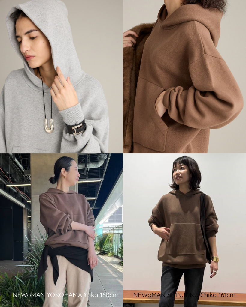 個人的にパーカーは大好き。何故ならフードをかぶると、少しだけ世界と距離が取れる感じ?みたいなww。落ち着きたい時、ひとりの世界に居たい時。そんな心の温度にもちょうどいいってわけでして。。余談はさておき、そんなパーカー好きなオトナにたまらないアイテムが登場。スウェット素材だとカジュアルになりすぎてしまうところを、コットン×ウールのブレンド素材で上品にアップデート。ふくらみのある編地が柔らかさを出しつつ、立体的なフードが程よい存在感をプラス。上品になりすぎない塩梅。立体感と素材感の絶妙なバランスが魅力的。合わせるボトムやシューズ、そして重ねるアウター次第で印象ががらりと変わるから、スタイリングを想像するだけでワクワク!パーカー好きの心をくすぐる1枚♡