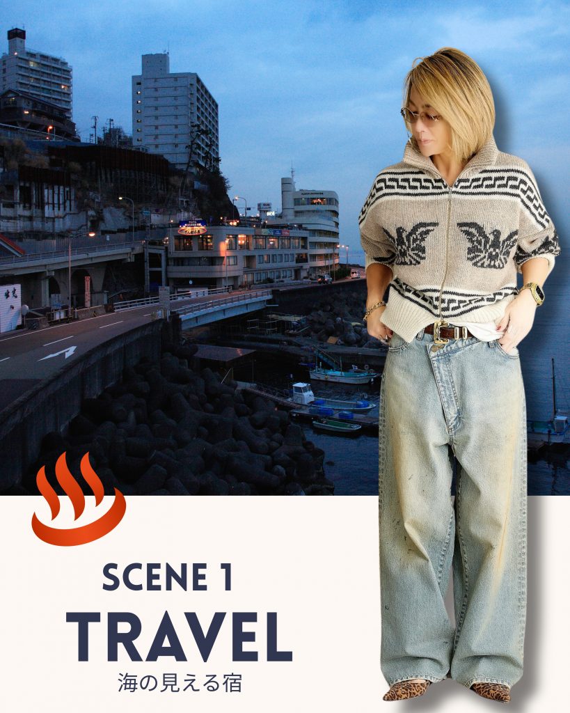 このスタイリング、実は深すぎる裏話がありましてね。。「この格好…なんか見覚えあるよね~?」って。そしたら我がディレクター、急にスイッチ入りまして、「いるいるいた~!!こーゆー感じの俳優!ウケるwww」って昭和?平成?のトレンディドラマの俳優の連射。こっちは真面目に取り組んでたのにぃ~、ディレクターは思い出の引き出しフルオープンで暴走&爆笑ね。…まぁそんな裏側があるのに本人本気で着てますから。w