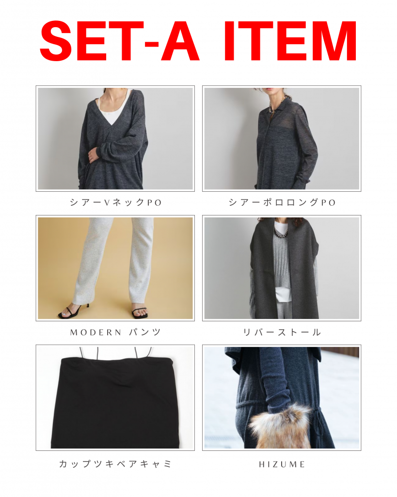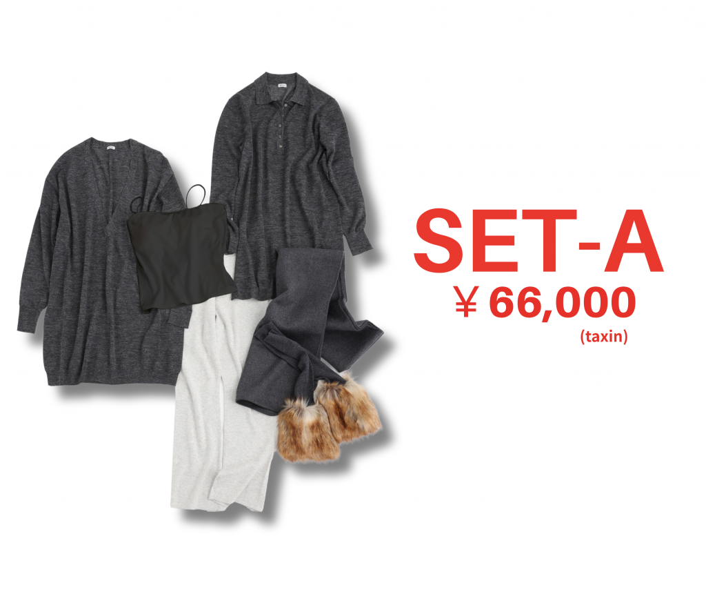 グレーなあなたへww。6点17万相当!のAセット。今回販売の中で一番アイテム数多いです!それぞれ単品でも人気で、使いやすいお色味が嬉しいですね~。日々のスタイリングに取り入れられそうな、ベーシックアイテムが詰まってます♡。