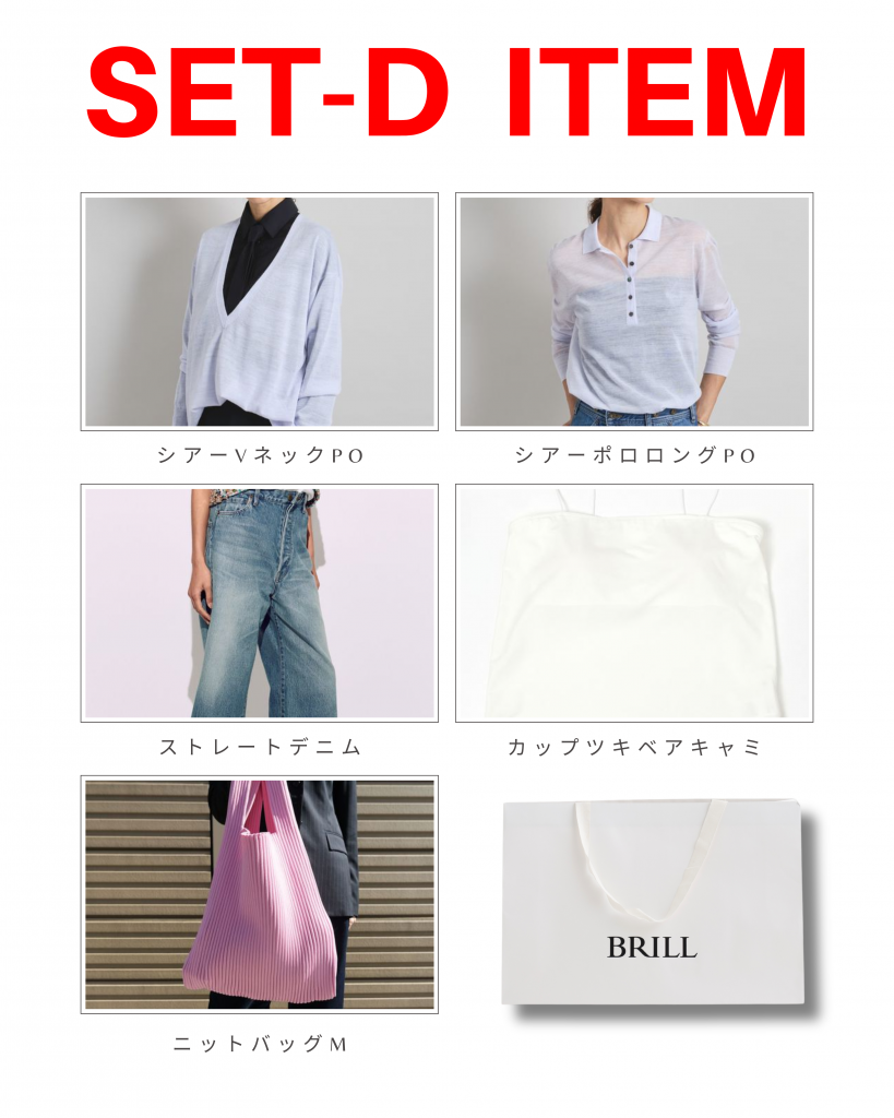 人気デニムが入った5点15万相当!セットでも単品でも使えるニットシリーズからは、ニュアンスラベンダーカラーをチョイス。春先に向けて心が弾むコーデです。そしてBRILLと言えば”デニム”。美脚効果の高いストレートデニムが入ってます!これも美味しいヤムヤムセットww。