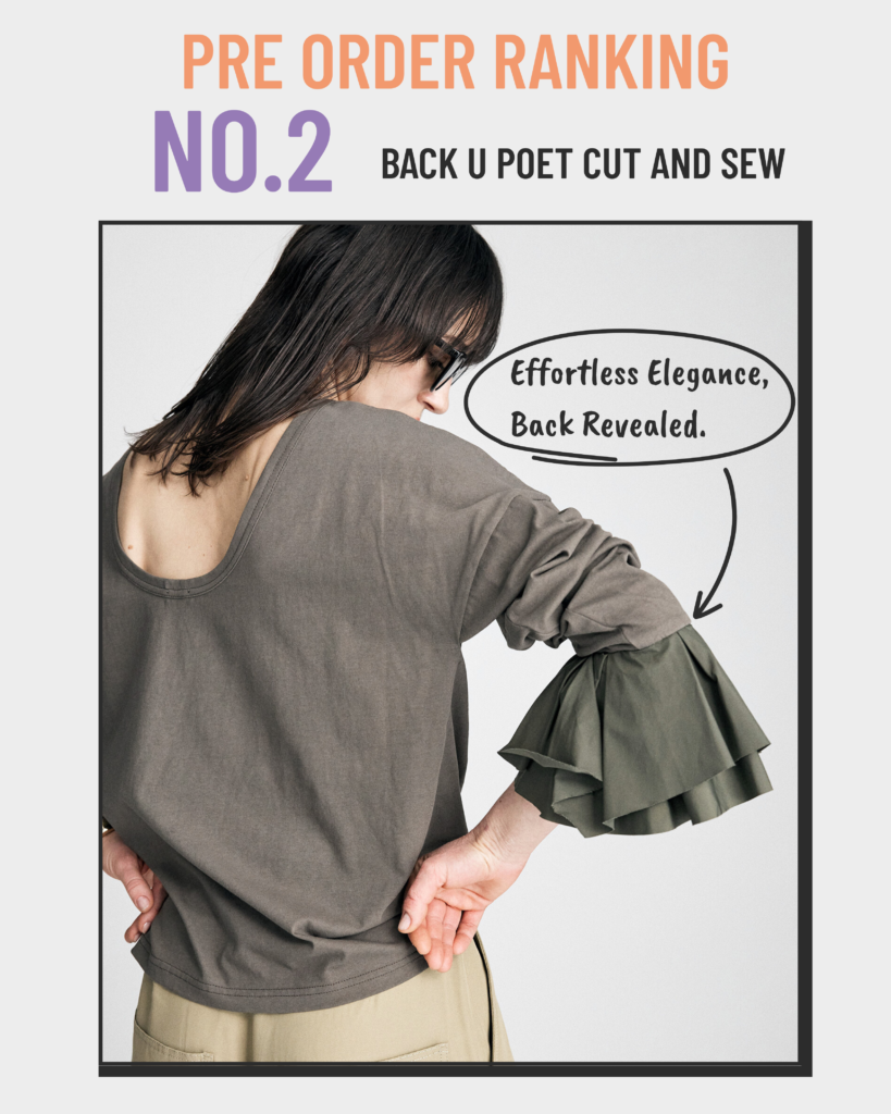 「後ろ姿も抜かりなく」上品光沢コットンのポエットスリーブ。「上質コットン × 異素材袖」洗練された大人の甘さ。今春も人気上昇!
