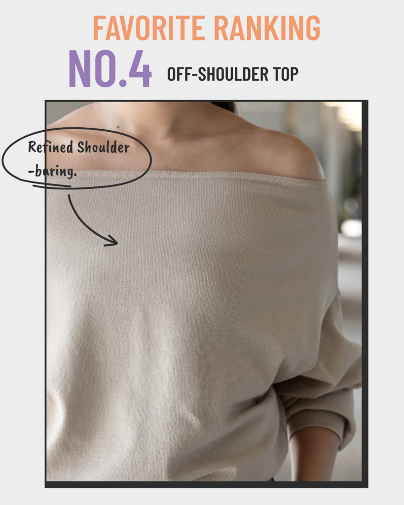 しっかりとした素材感なので、オフショルダーとしても、少し肩を落としたプルオーバーとしても着用可能。その日の気分やシーンに合わせて、ヘルシーな肌見せを楽しめます。