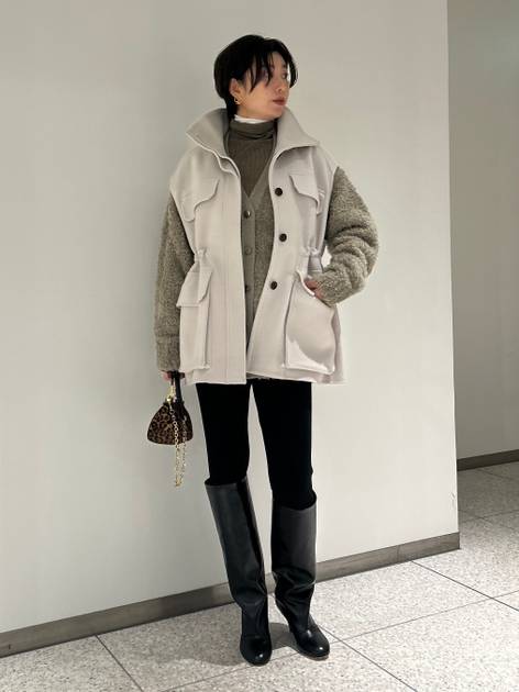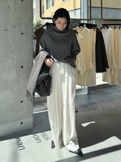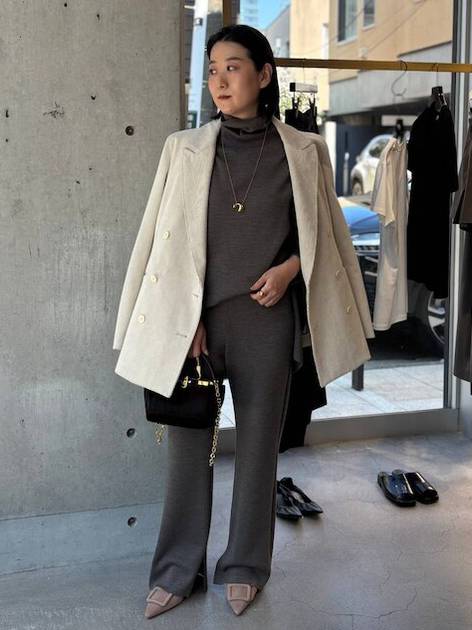 オーバーサイズでラフに着用でき、素材感がウール100%のため、キレイ目のスタイリングにも取り入れられます◎