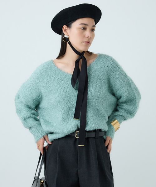 シルク100%の太めのループ糸を起毛して編まれた贅沢で、肌触り・着心地ともに抜群のニット!