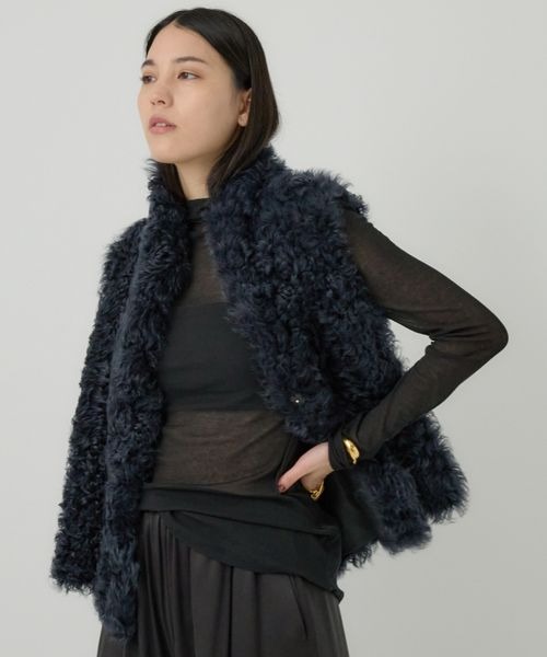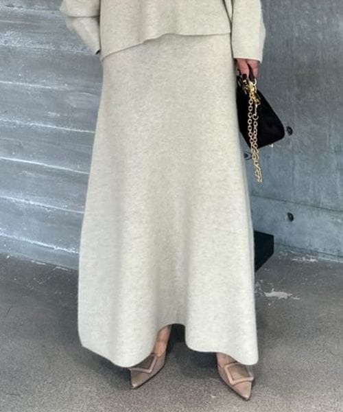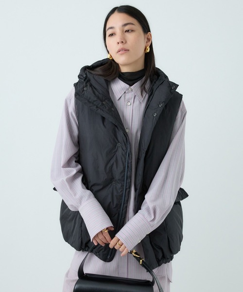 フレアシルエットが上品で美しいレニーリバースカートに、程よくボリューム感のあるダウンベストを合わせ