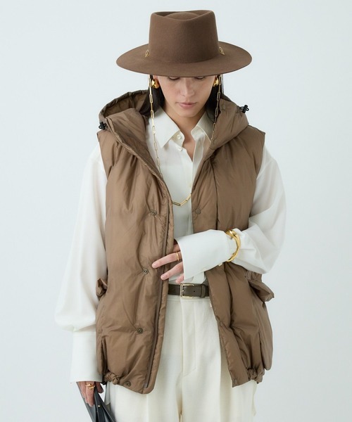 セットアップのシャープな印象にダウンベストを重ねて程よくカジュアルに。