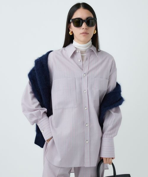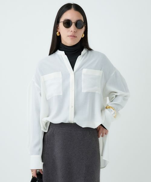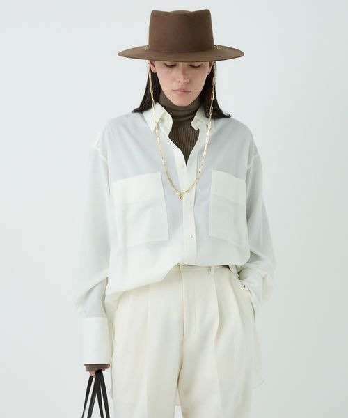 シャツをレイヤードすることで大人っぽくエレガントな印象に。