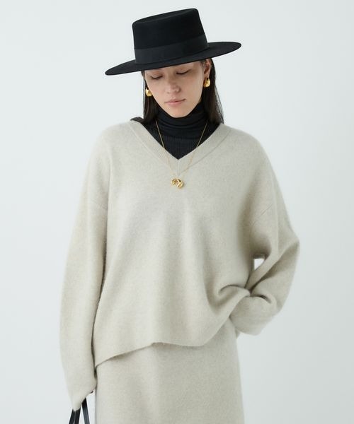 スキッパーの襟が抜け感のあるプルオーバーにリラックス感のあるパンツを合わせ、程よくカジュアルに落とし込みながらも全体のバランスはクールに。