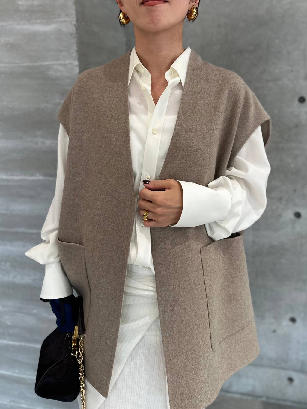 上質なリバー素材を使用した極上ベストは、素材を生かすためミニマムに作成。裏がつかない一重仕立てで軽やかな着心地です。