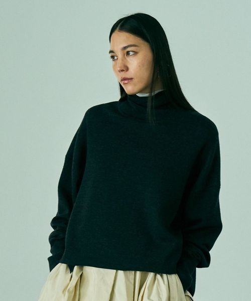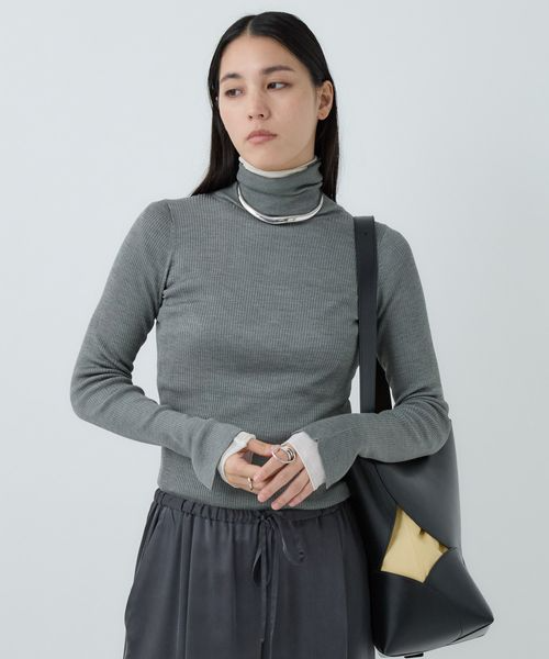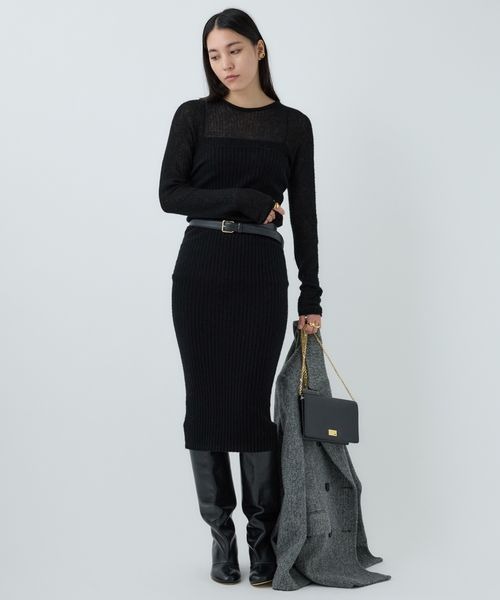 やわらかな素材感のニットにパティーロングスリーブを重ねて抜け感をプラス。