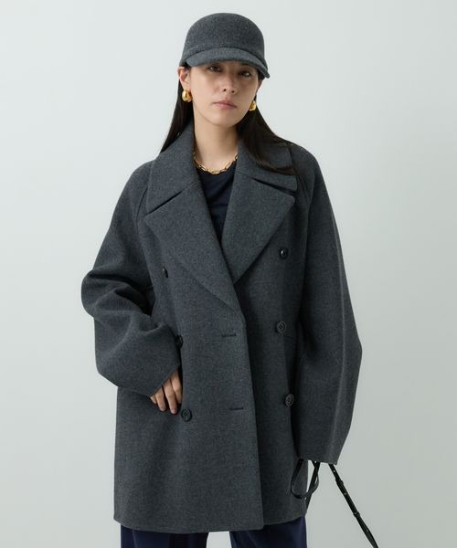 タイトスカートと少し大きめのコートのバランスが女性らしさを引き立てます。