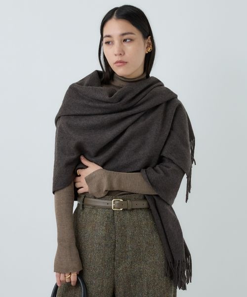 チャコールグレーのコートにブラウンカラーの小物を合わせ、柔らかく深みのある今年らしいムードに。
