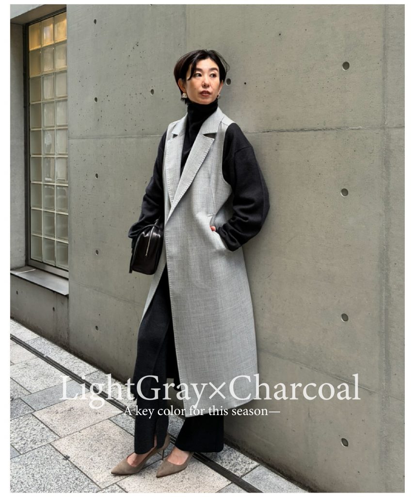 Chaosの冬の名品"シエラウールシリーズ"を3ピースで着用し、尾州地区の職人によって作られた上質なウールベストを主役に。 ベストのクリーンなライトグレーがシエラウールのチャコールグレーと美しく調和します。 異なる素材とトーンのコントラストがシンプルなスタイリングに奥行きを生み出し ハンサムさの中に上品さを感じるChaosらしいグレートーンのコーディネート。