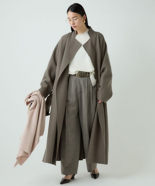 袖がラグラン仕様により、通常のPコートよりも柔らかい印象が特徴。