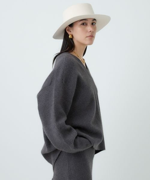 程良い深さのVネックと長めの袖丈で女性らしさとニュアンスをプラス。