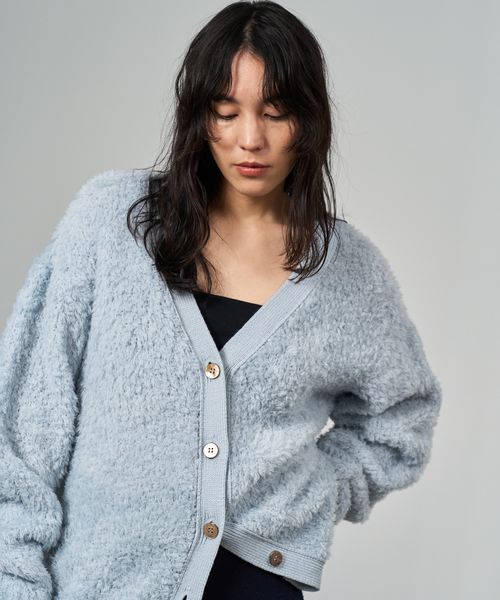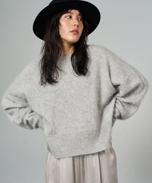 ファー加工で毛をふかしたカシミヤ100%のニット。