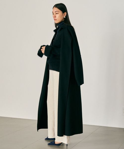スタンドの襟から裾まで流れるゆったりとした余裕を感じる贅沢なシルエットが魅力的。