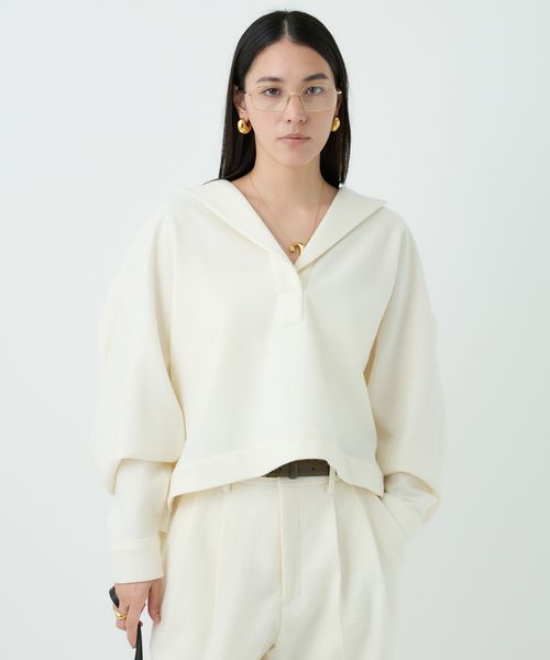 リラックスしたボリュームで体を包みながら、フォルムとシルエットが際立つ新作ニット。