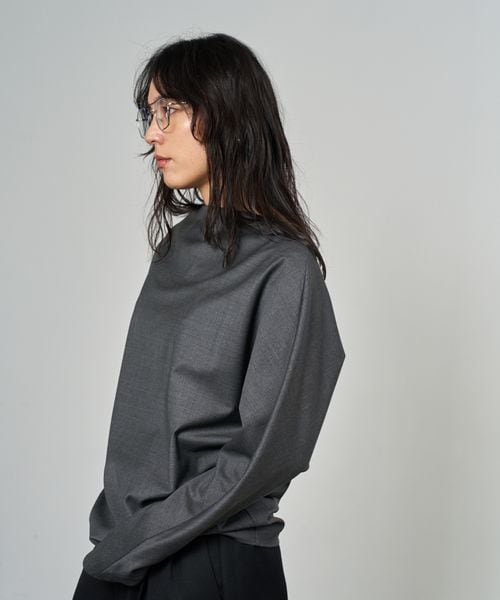オーバーサイズのタートルネック。長めの着丈でバランスも取りやすいです。