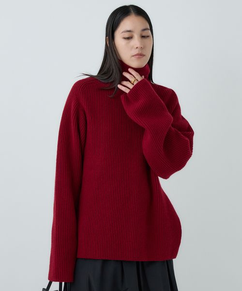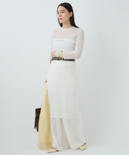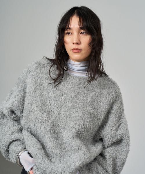 ほどよいシアー感がニュアンスを生み、シンプルでコンパクトなリブのクルーネックは着回しにもおすすめ。