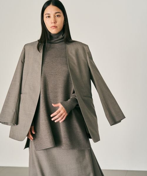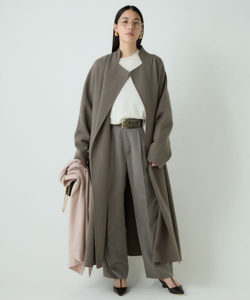ノーカラーロングコート