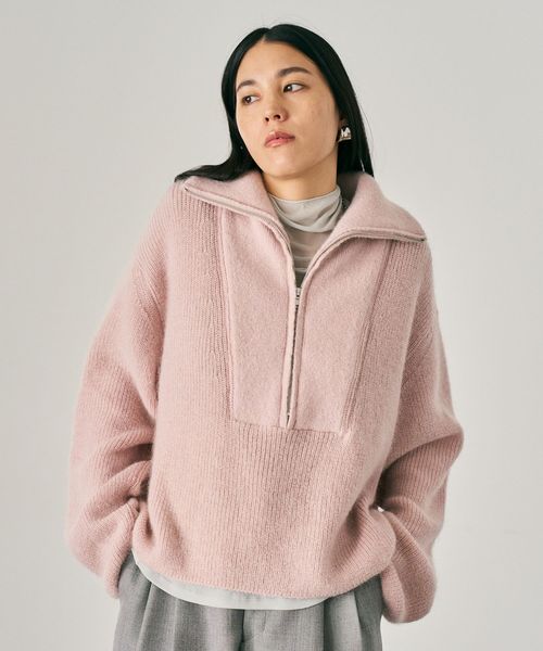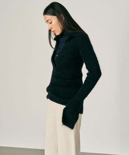 大きめの襟とタイトフィットのシルエットはこれからのインナーニットとして◎