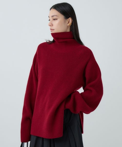 オーバーサイズのタートルネック。長めの着丈でバランスも取りやすいです。