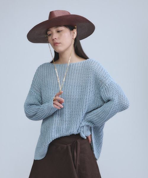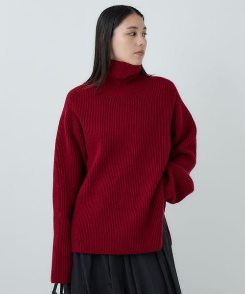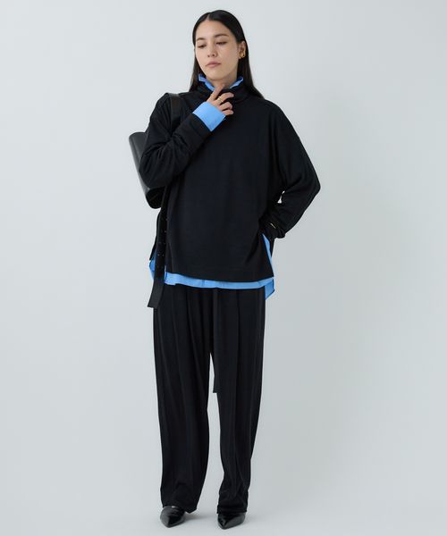 着心地はストレスフリーで、きちんと感もあり、ニットの中では比較的薄手なので着回しに便利なアイテムです。