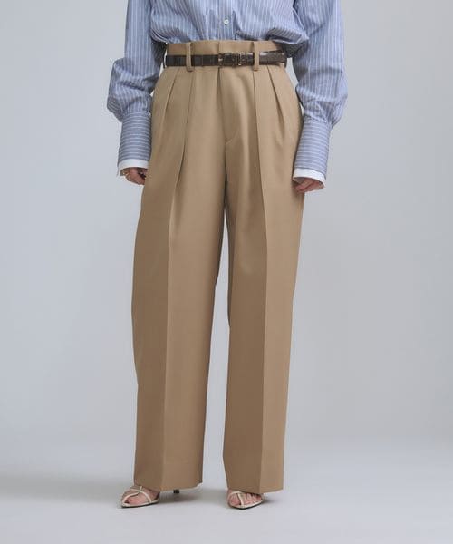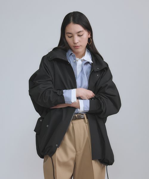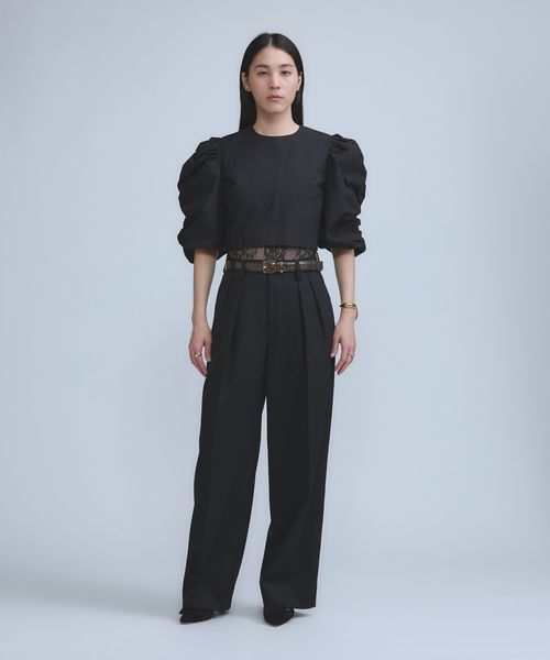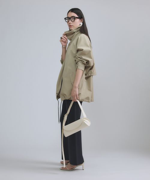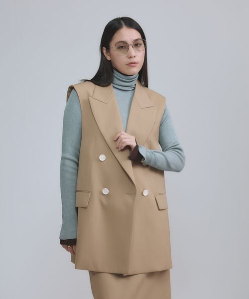 生地に加工を加え張り感を出し、シルエットはモードに仕上げたジレとボトムスのセットアップや、