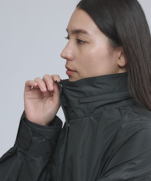 襟にフードが収納されているので、襟が立ち小顔効果があるのも嬉しいポイント◎