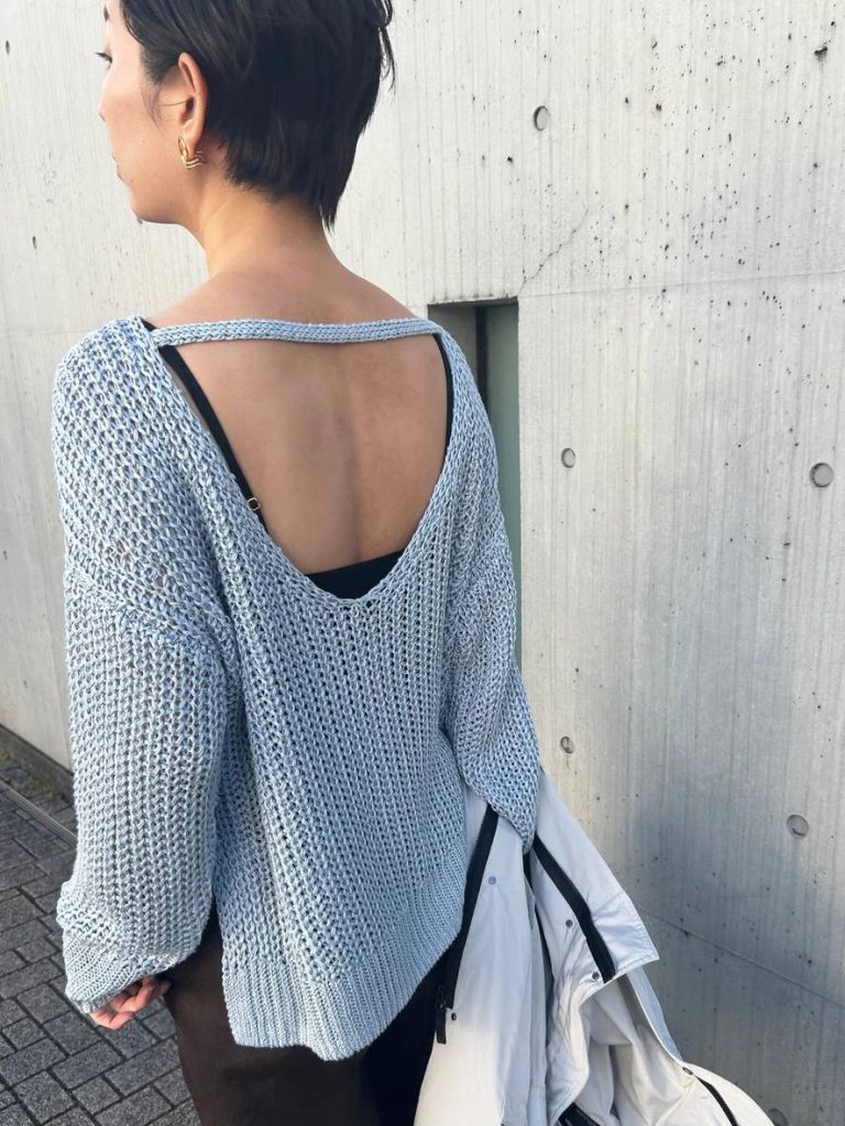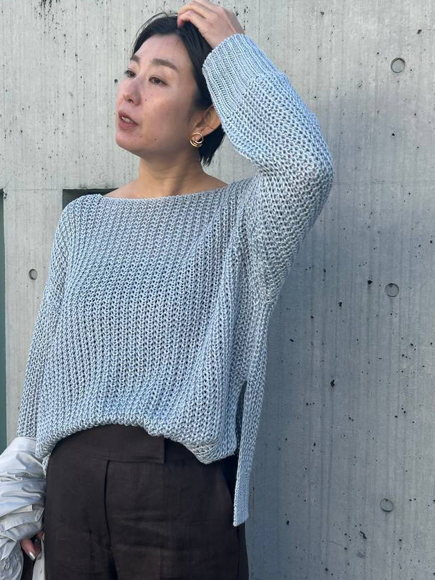 カオスの春夏ニットの名品“ウォーダリネンプルオーバー” に、「アイボリー」が新入荷。春の訪れとともに着たくなる、清らかなアイボリー。 単なるアイボリーのニットではなく、リネンに艶のあるフィラメント糸を撚り合わせているため、光が当たると濡れたような瑞々しい光沢が生まれます。 顔周りをパッと明るく見せてくれるこのカラーは、まだ肌寒い時期から春の気分を取り入れるのに最適です♪