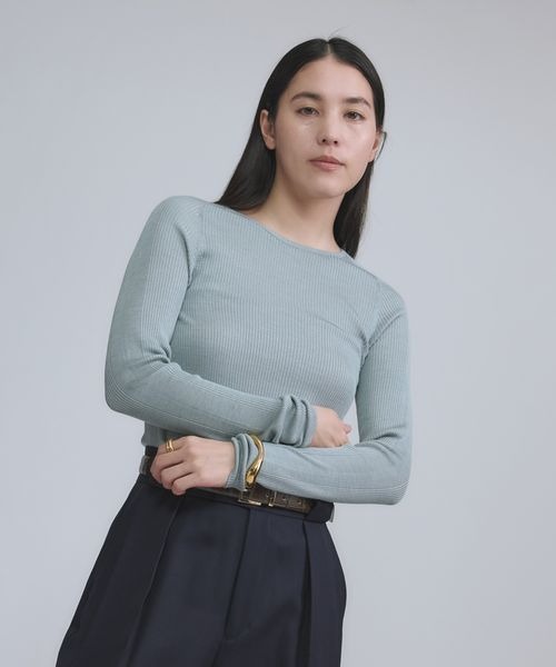 18Gシルクリブニットクルーネック