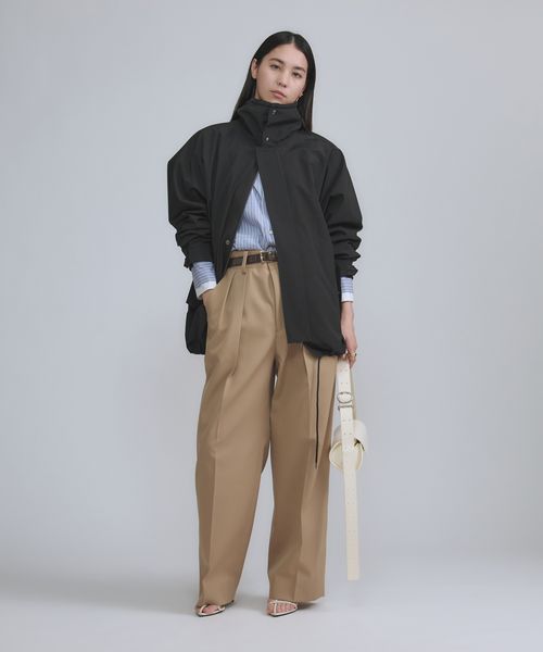 2インタックが新しいトラウザーパンツは、程よいテーパードシルエットで足のラインをすらっと綺麗に見せてくれます。梳毛ウールでハリがあり、シワになりづらいのも嬉しいポイント!