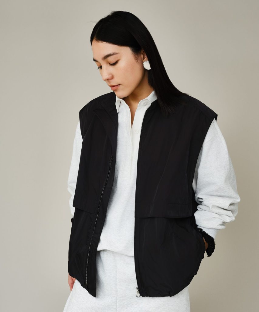 スポーティーなアスレチックベストを、Chaosらしい肩回りやボディの丸みのあるフォルムでモダンな佇まいに仕上げました。 ベンチレーションを搭載しているため、重ね着をしても熱がこもりにくく、軽やかな着心地です。今の時期はスウェットの上に、暖かくなったらTシャツに合わせて。 インナーを変えることで、ロングシーズン活躍します。素材は、形状記憶のような独特なタッチを持つポリエステルタフタ。 ナイロンのようにしなやかでありながら、ご自宅の洗濯機で洗えるイージーケア仕様も魅力です。