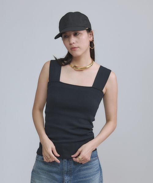 シンプルに削ぎ落とされたラインが美しいタンクトップ。フィット感がありながらもなだらかに沿うシルエットも◎