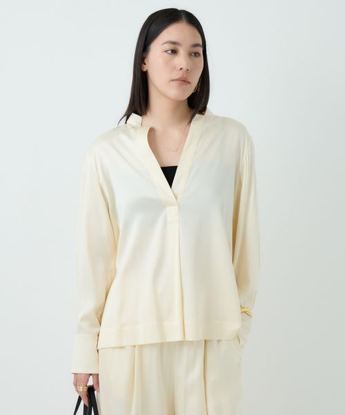 首元がシャープに見え、大人な印象に。