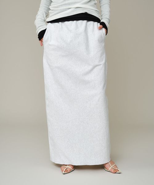 タイト過ぎないロング丈のスウェットスカートは、Iラインシルエットですっきりと、リラックス素材でも大人っぽい印象に。