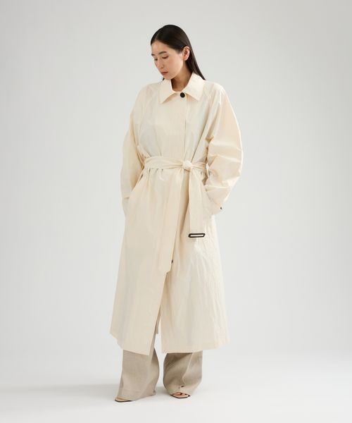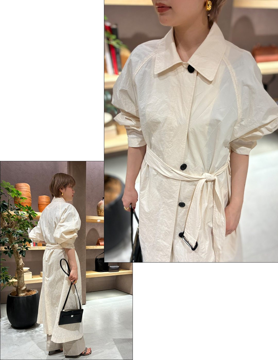 春一番に揃えたいのは、やっぱり新しいアウターです!冬の重たいウールコートを脱いで、軽やかな春の一着に袖を通すとき、春が来たなと強く実感します。今シーズン私がリアルに狙っているのは、とにかく色が春らしいこのバルマカーンコート。しっかりとしたハリがあるのに、纏っていることを忘れるほど軽いので、春アウターといえばトレンチなど定番も色々ありますが、これからの季節に一番出番が多くなりそう。素材感も魅力で、時間をかけて丁寧に天日干しされたコットンナイロン素材は、手作業ならではの趣深いしぼ感があって、どこか温もりを感じる表情。また、ゆったりとしたサイズ感なので肌寒い時期は中に着込むこともできます◎