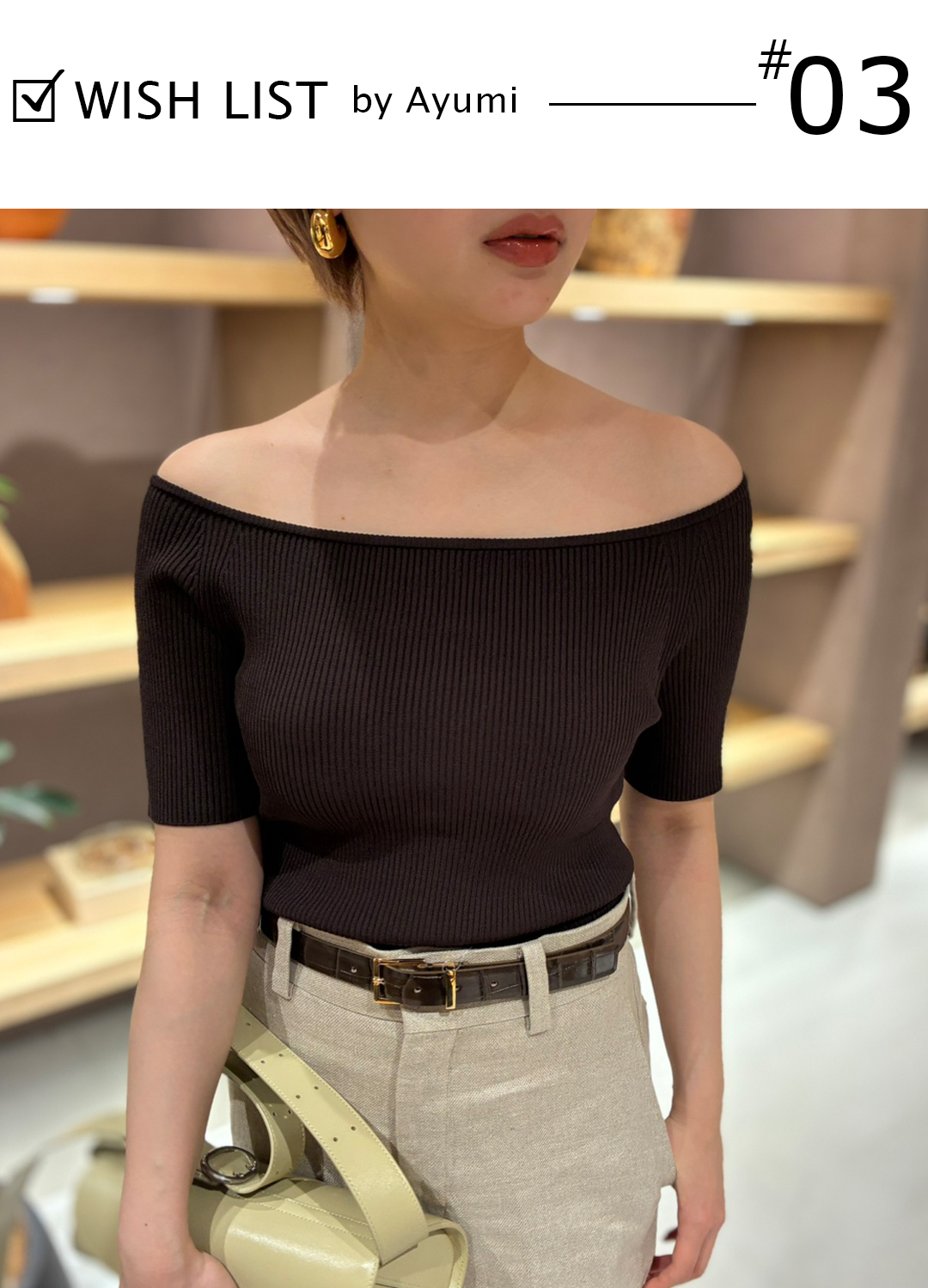 Chaosでは何度かリピートしていて、そのたびに大好評をいただいているこの別注オープンネックは、NICENICE MOMENTのエッセンシャルな一着。大きく開いたデコルテラインが特徴です。実際に着用してみ一番感動したのは、なんといってもストレスフリーな着心地です!こんなに楽ちんなのに、デコルテや身体のラインをとても綺麗に見せてくれるのが驚きです。締め付けることなく確実にラインを整えてくれる安心感があります。ジャケットのインナーとしても大活躍しそうなこのトップスは、春のはじまりに真っ先に手に入れておきたい一枚です。
