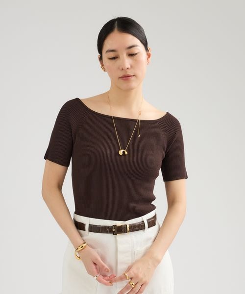 【NICENICE MOMENT】オープンショルダーハーフスリーブニットトップス