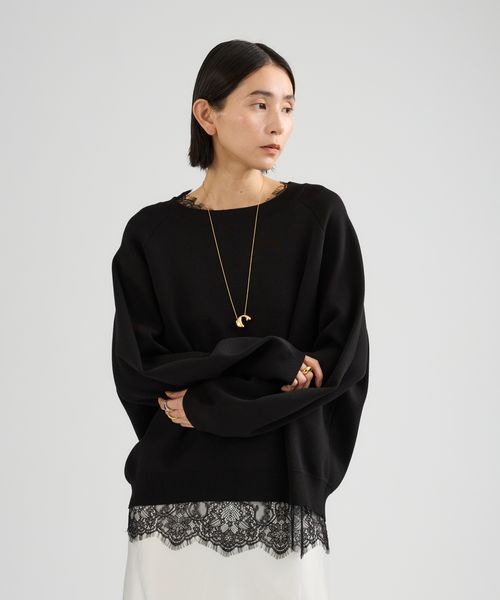 ラグラン特有のカジュアルさを削ぎ落とし、計算された立体裁断で“360度美しい”洗練された佇まいに。1枚ではもちろん、襟元や裾からレースを覗かせるレイヤードを楽しむことで、より洗練された女性らしさが際立ちます。