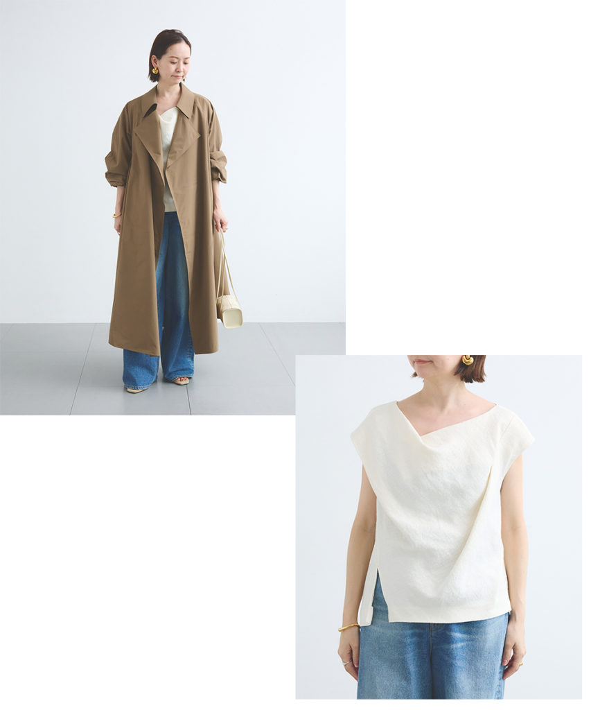 今まで身長とのバランスを考えミドル丈派だった私も、今年はロングシルエットをずるっとラフに羽織るバランスに惹かれています。
