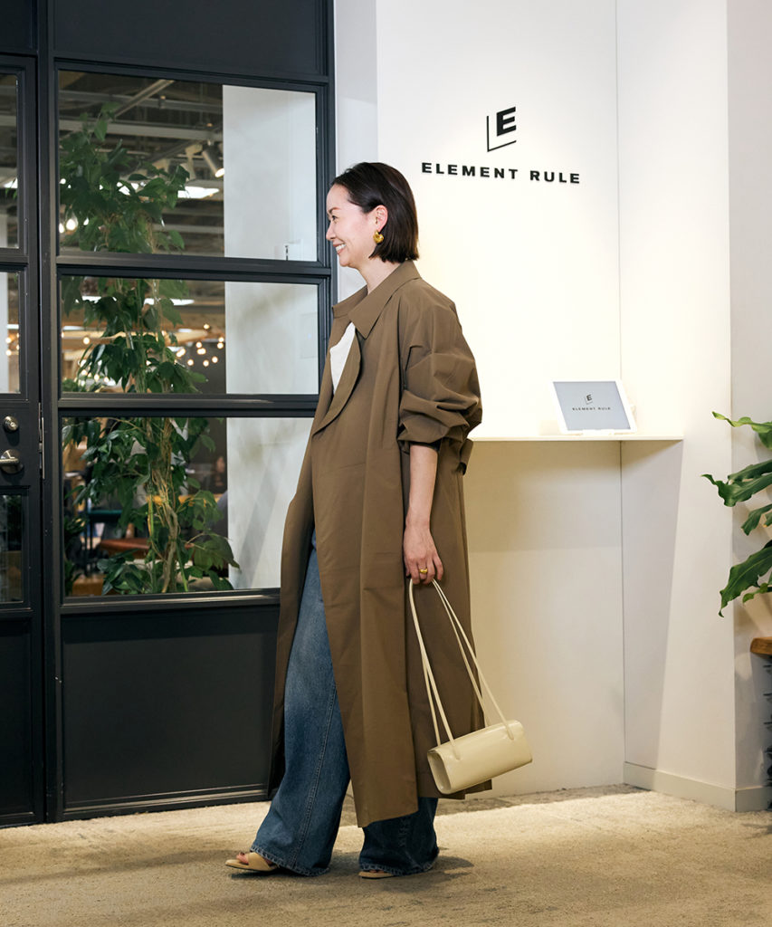 今回は全体をベージュトーンでまとめることで、コントラストを抑えた大人なスタイリングを意識。