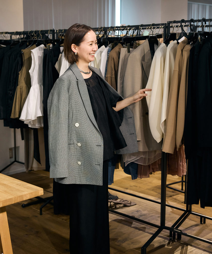 2LOOK目は、プレスルームで社外の方とお会いする日をイメージしたジャケットスタイル。